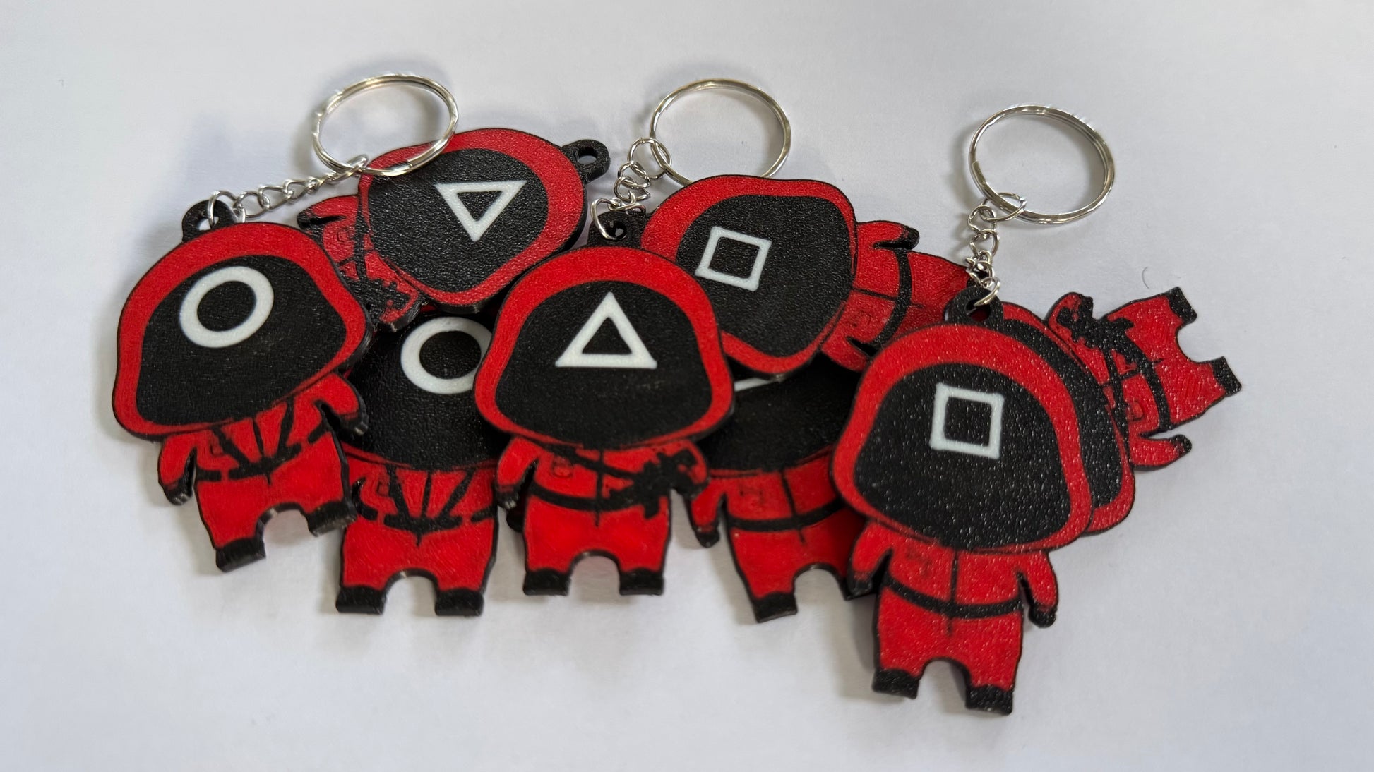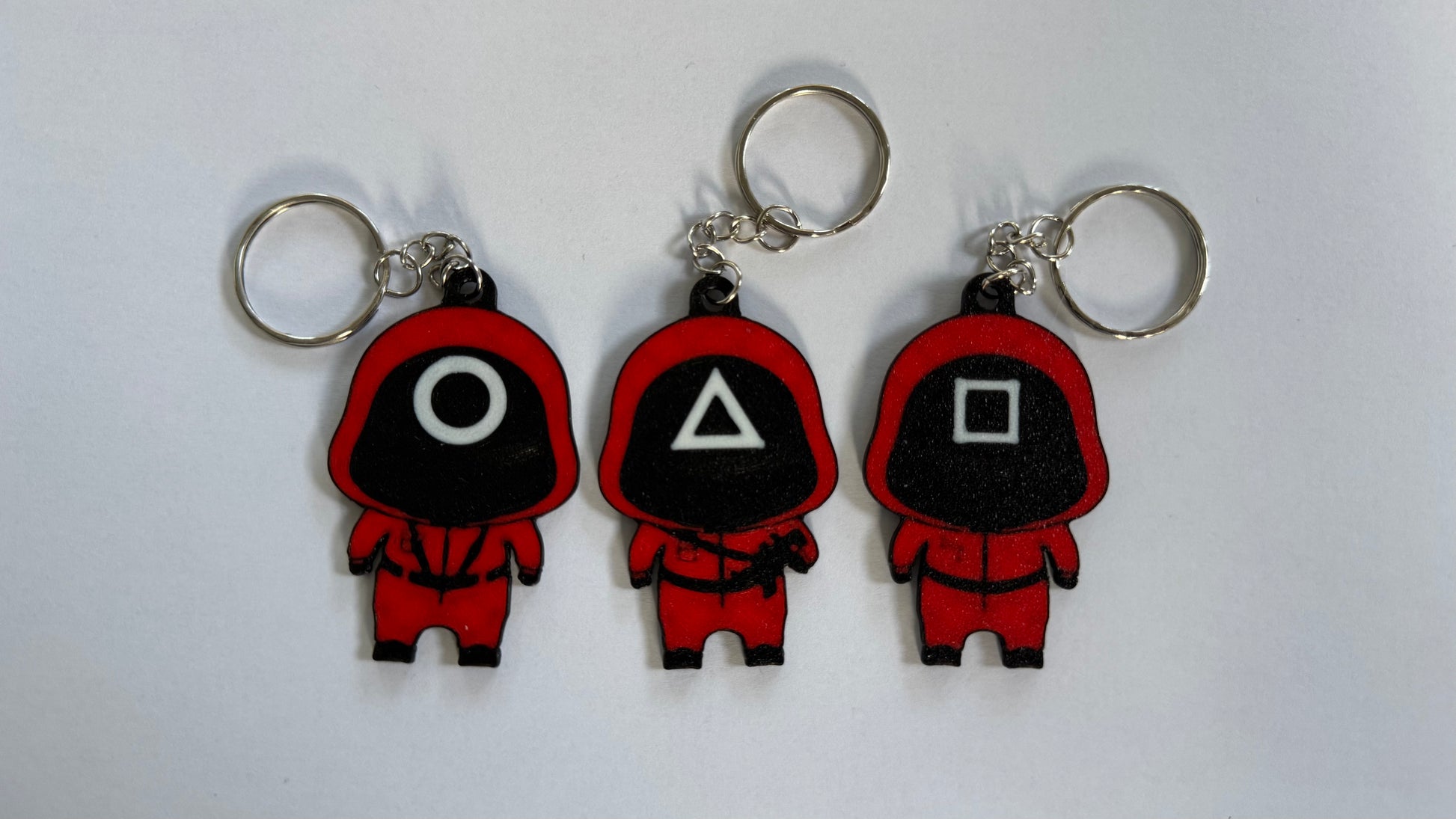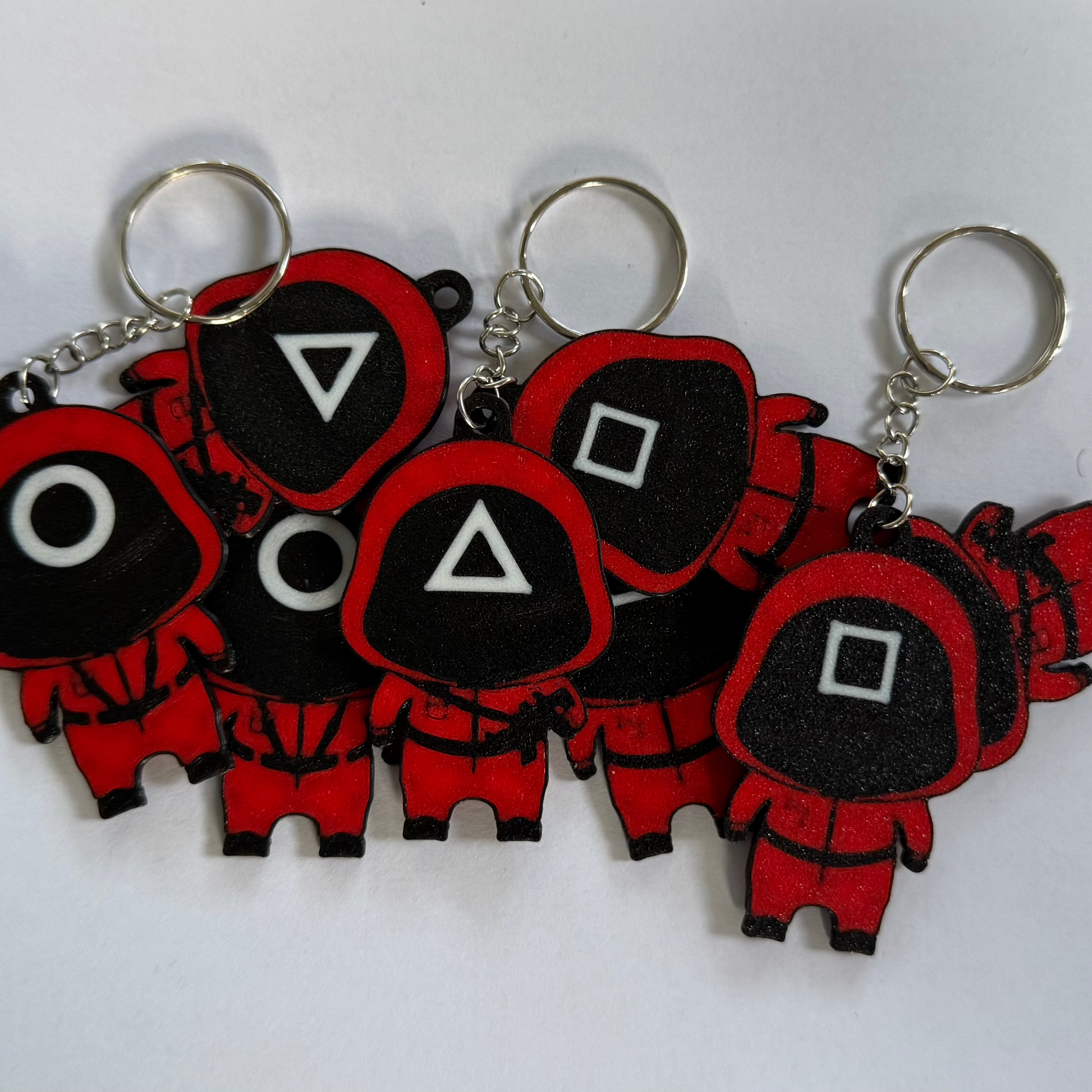 Affichez votre passion pour Squid Game avec notre porte-clé figurine garde en 3D. Chaque porte-clé représente les célèbres personnages masqués de la série, parfait pour personnaliser vos clés, sacs ou accessoires.