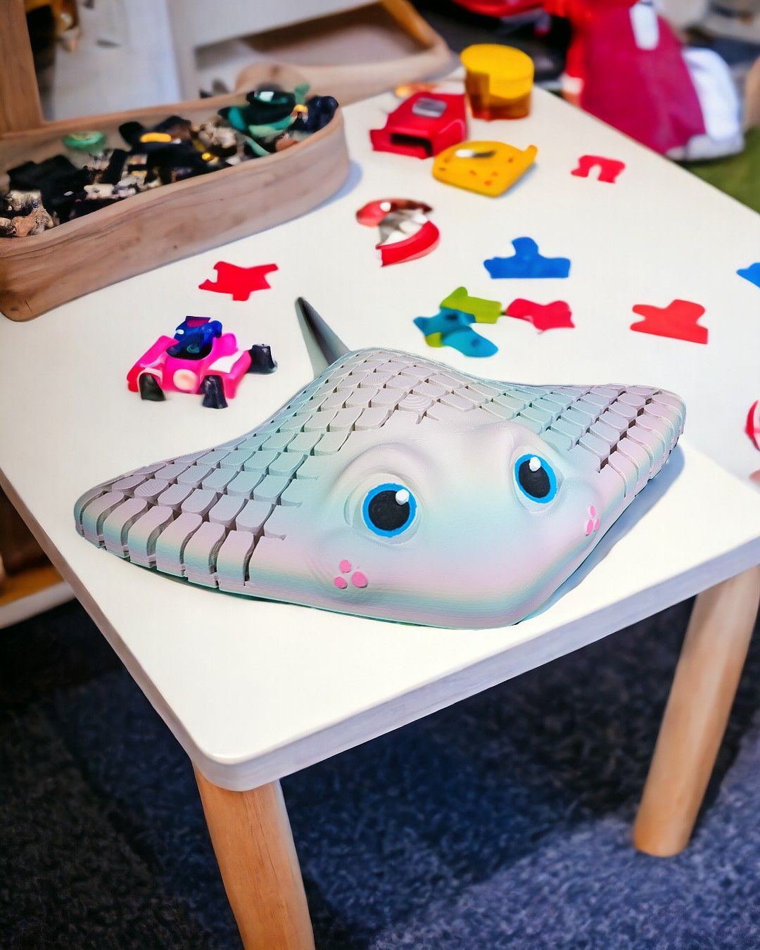 Admirez cette raie manta articulée imprimée en 3D, au design fluide et réaliste. Grâce à sa structure flexible, elle ondule naturellement quand on la manipule, offrant un effet visuel captivant.