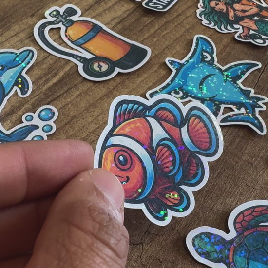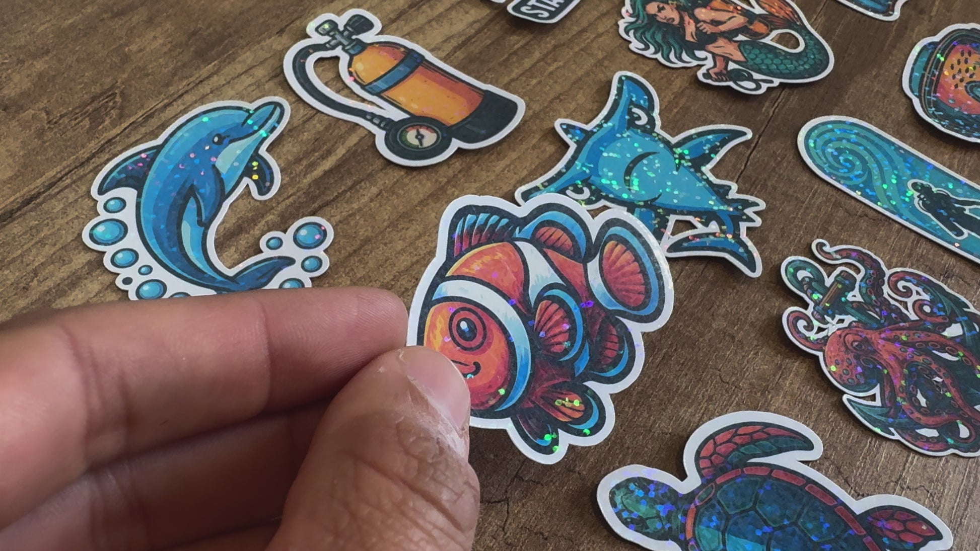 Stickers plongée, poissons étanches – effet holographique, irisé ou pailleté